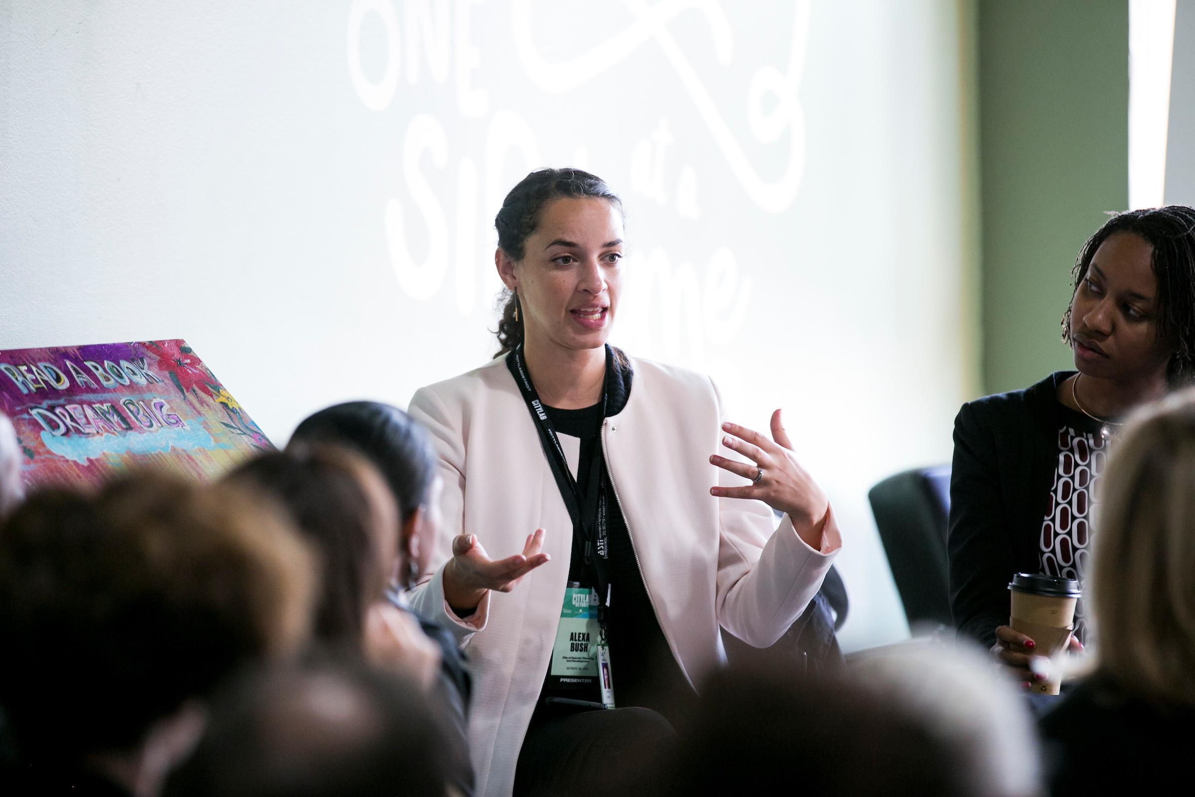 When Ella Fitzgerald Park – complete with green grass, a jungle gym, a basketball court and two 60-foot murals – opened in summer 2018, Alexa Bush ’02 got to see firsthand the impact she is making in the world.