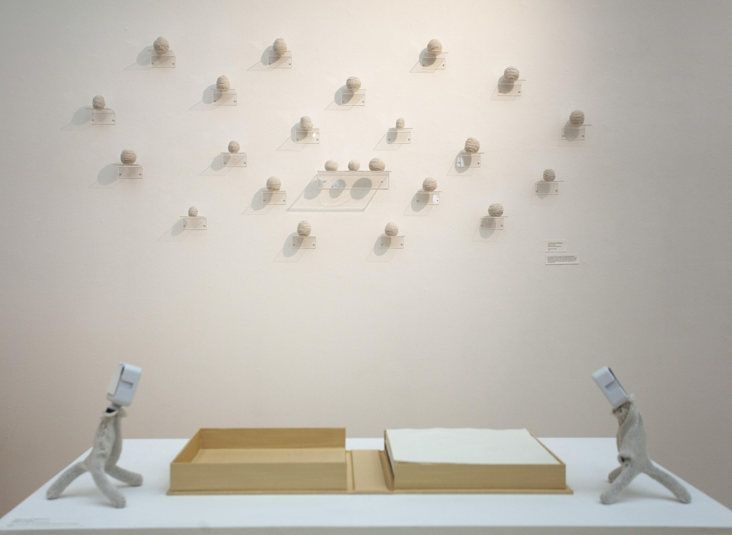 Alexa Gross ’17, who just graduated from Wellesley College with a double major in studio art and neuroscience, was awarded the senior prize in studio art with a series of multimedia pieces that “explore themes of intergenerational memory, relationships, and identity through a scientific lens,” her statement on the exhibition reads. Drawing on the experiences of her mother and grandmother, Gross brought together printmaking, photography and drawing, using materials such as string, used gloves and a video she filmed of herself, her mother and her grandmother discussing their lives while taking apart the gloves that were used in the exhibit.