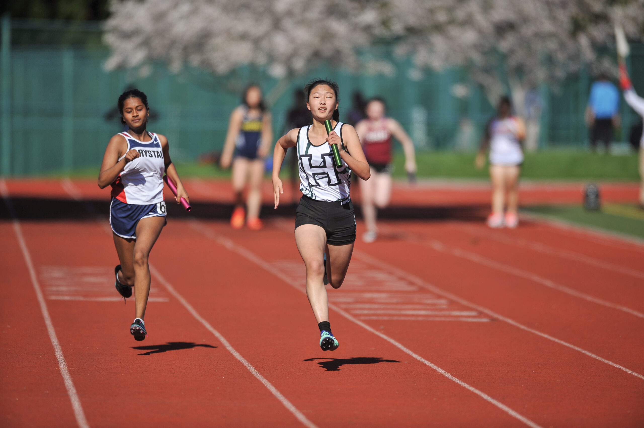 The track and field team traveled to Sacred Heart Prep last week and did very well as it competed in its first WBAL meet of the year. The team of Aria Coalson, Gloria Guo and Grace Koonmen, all grade 10, and Sara Min, grade 9, set a new school record in the girls 400m relay. Niki Iyer, grade 11, continued her amazing year as she won the 1600m. Winnie Li, grade 11, took first in the high jump, as well as second in the 100m hurdles and third in the 300m hurdles. Anthony Contreras, grade 10, took second in the 200m, and tied with Lucas Wang, grade 11, for third in the long jump. Bill Liang, grade 11, won the 300m hurdles, his first ever first place finish. The Eagles will compete at the Firebird Invitational this weekend at Fremont High.