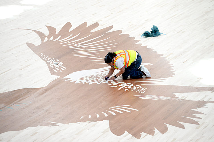 The eagle has literally landed on the gym floor in Harker’s new athletic center, and the whole project is nearing completion in plenty of…