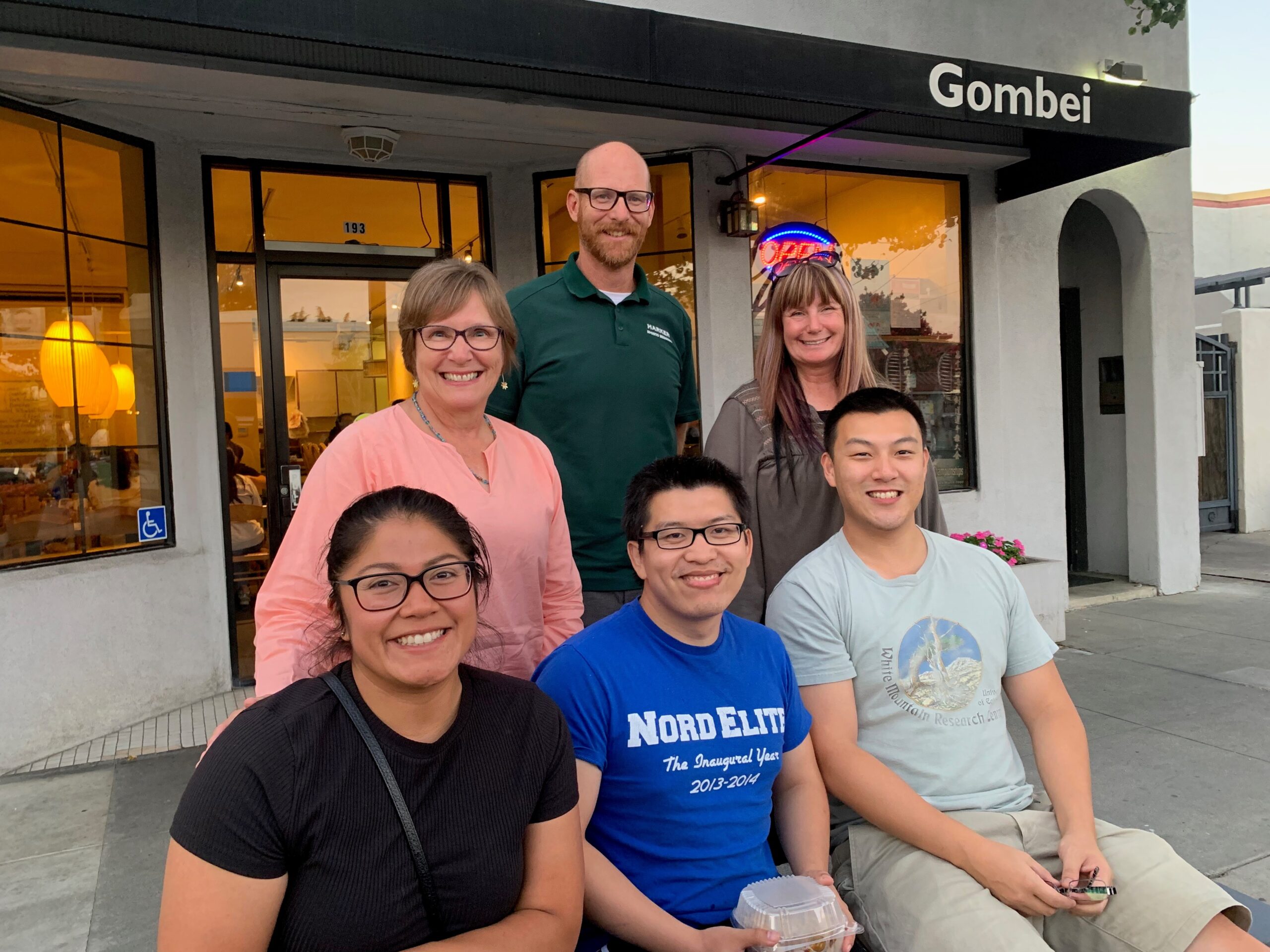 Danny Wang began medical school in England this fall. Danny and classmates Ashley Del Alto and Michael Chen joined Kerry Enzensperger, Clare Elchert and Jaron Olson for a fun gathering to say goodbye and good luck at a send-off dinner at Gombei in Japantown in San Jose.