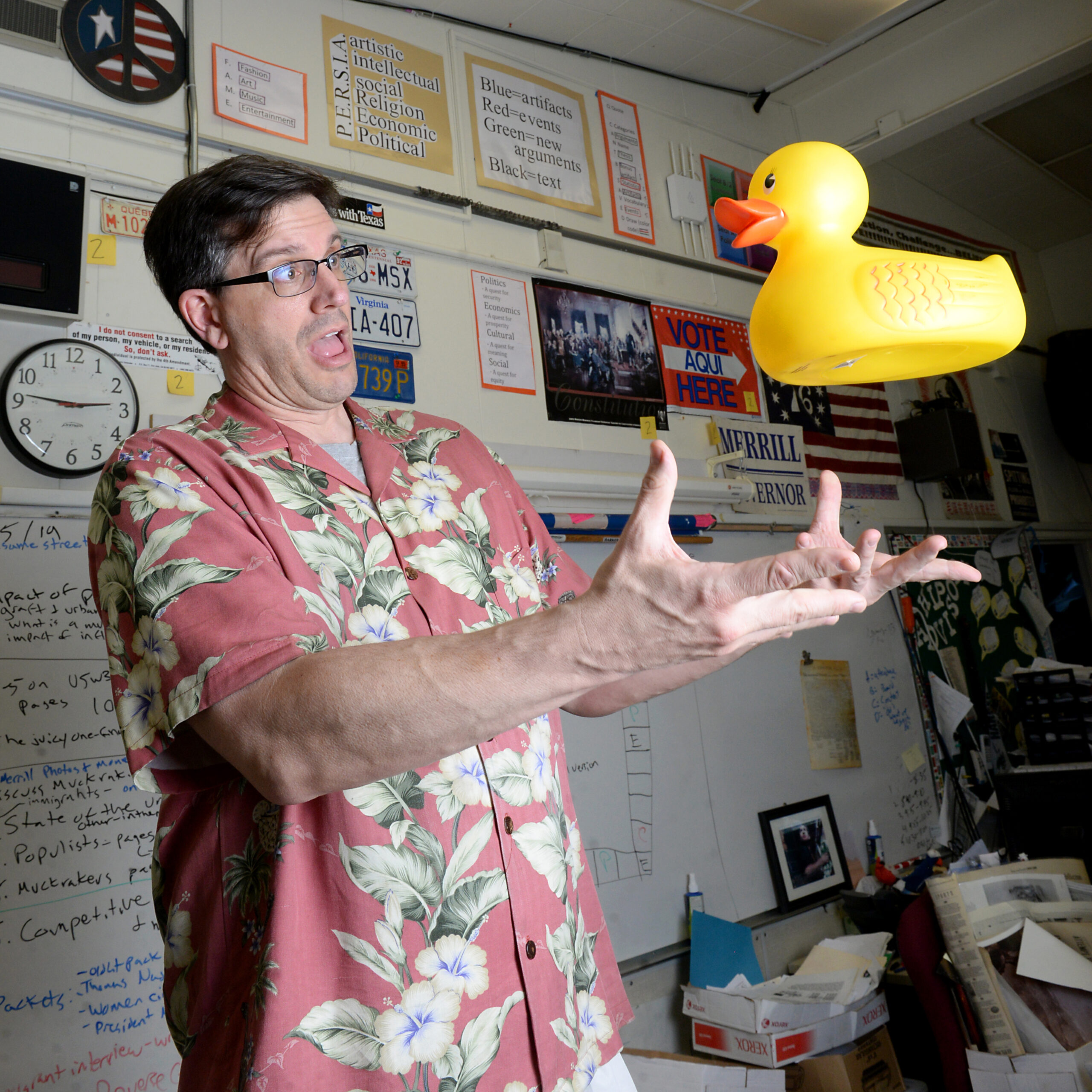 Ask a middle school student or colleague to sum up Cyrus Merrill in a few words and you might get “laughter,” “enthusiasm,” “energy” or, most likely, “Hawaiian shirts!” It may come as no surprise to learn he was his college’s mascot (a big blue sagehen). Merrillteaches grade 8 U.S. History and coordinates the grades 5-12 Future Problem Solving clubs, and is known for crafting engaging and humorous lessons. He says his 2-year-old daughter helps him remember that simple joys and laughter may be found in seemingly insignificant things. It’s clear from his chat with Harker Magazine that this enthusiasm for life and adventure runs through everything he does and shines on the students lucky enough to be in his classes.