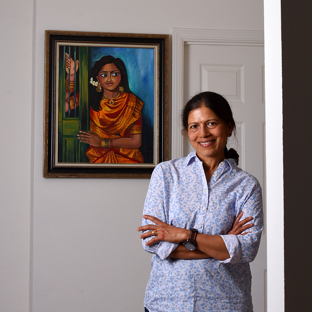 Middle school chemistry and physics teacher Rajasree Swaminathan has found balance in her life. Firmly planted in the STEM world, first as an engineer and then as a teacher, she has an equal passion for art, sketching and painting to relax, rejuvenate and deepen her teaching. Justly proud of many things, Swaminathan revels in her volunteer work with art and pediatric cancer organizations, her Harker students, and her son, Ashvin ’13, a Harker valedictorian and Harvard graduate.