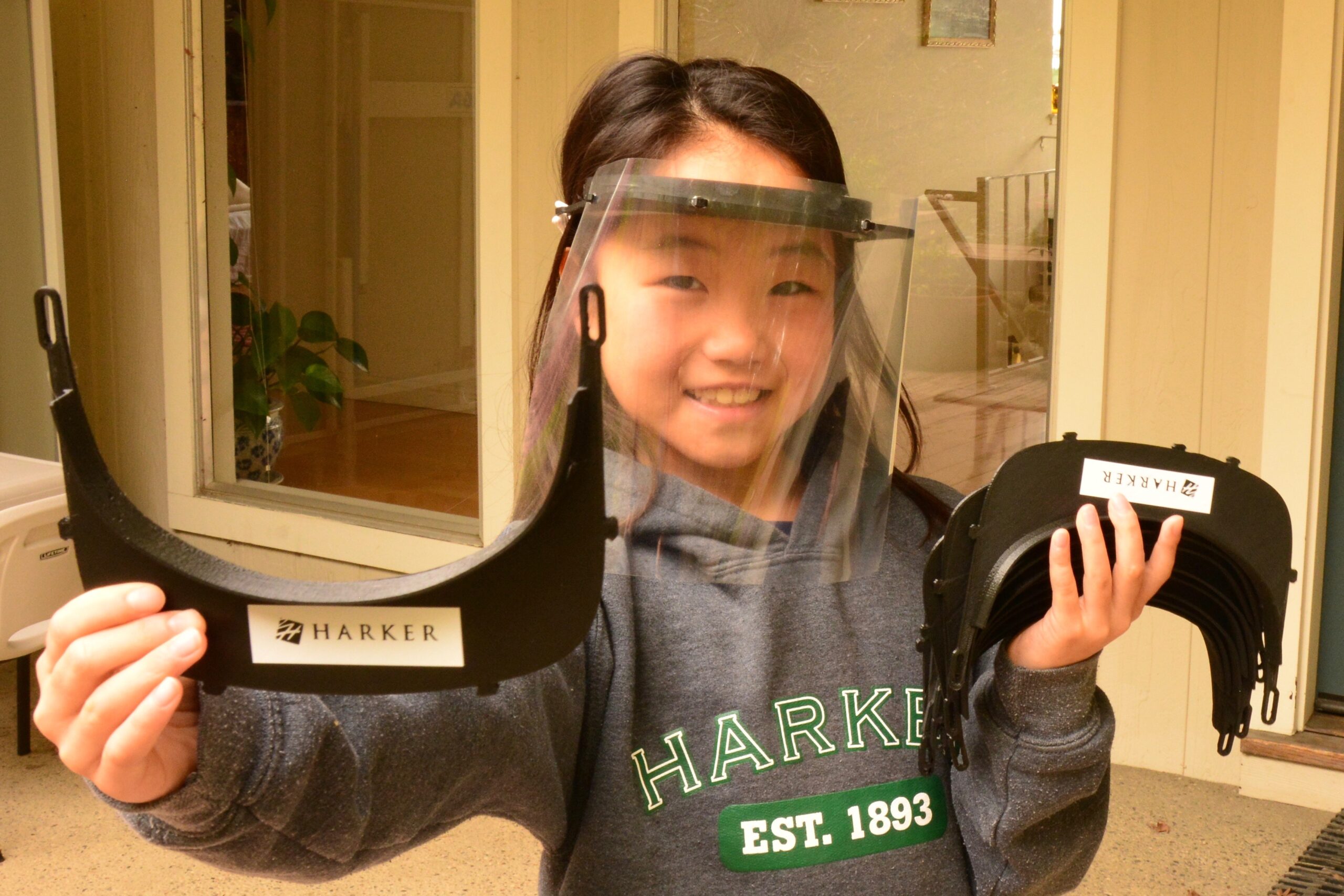 In late March, a number of Harker families began making face shields to help local hospitals deal with a projected surge of COVID-19 patients. Having heard that 3D-printed face shields had become popular, Harker parent Mary Yang (Andrew Pangborn, grade 4) reached out to her friend, Jian Chen (Kevin, grade 5, and Julie, grade 4), who owns a 3D printer, and asked if he could produce some masks for her and her co-workers at Kaiser Permanente in Santa Clara. The family of Emma Lee, grade 5, and Anna Lee, grade 8, also joined the effort, and the group ended up printing and assembling 100 masks. “The doctors and nurses at Kaiser loved them,” reported Yang.
