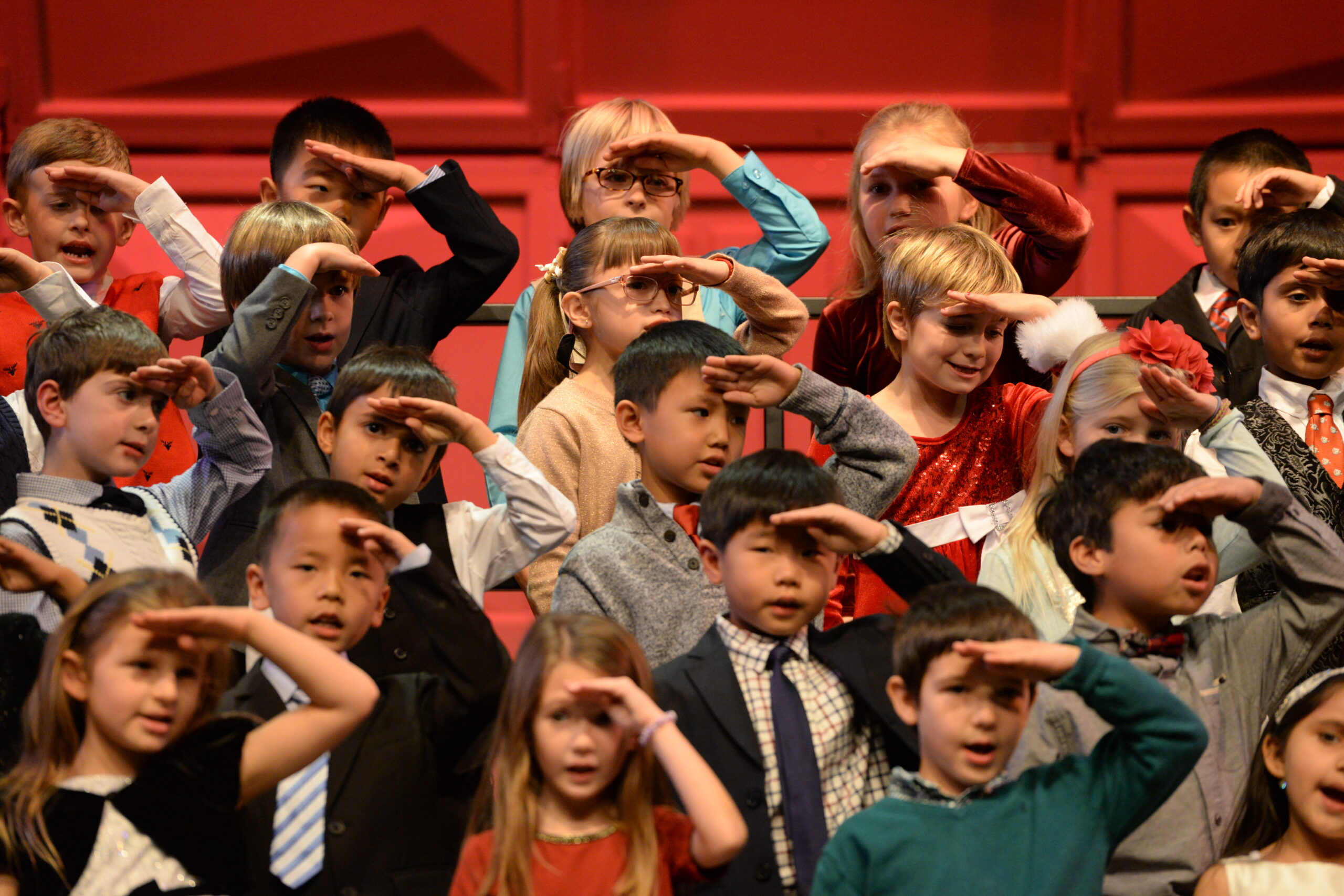 On Dec. 15, just days before the winter break, the grade 1 homeroom students of teachers Imelda Kusuma, Cindy Proctor, Larissa Weaver and Rita Stone gathered on the stage at the Bucknall Theater for the annual grade 1 holiday show, directed by Carena Montany. The students sang seasonal favorites, including “Santa Claus is Comin’ to Town” and “We Wish You a Merry Christmas,” as well as newer songs, including “Spin a Little Dreidl” and “A Million Little Snowflakes,” the song for which the show was named.