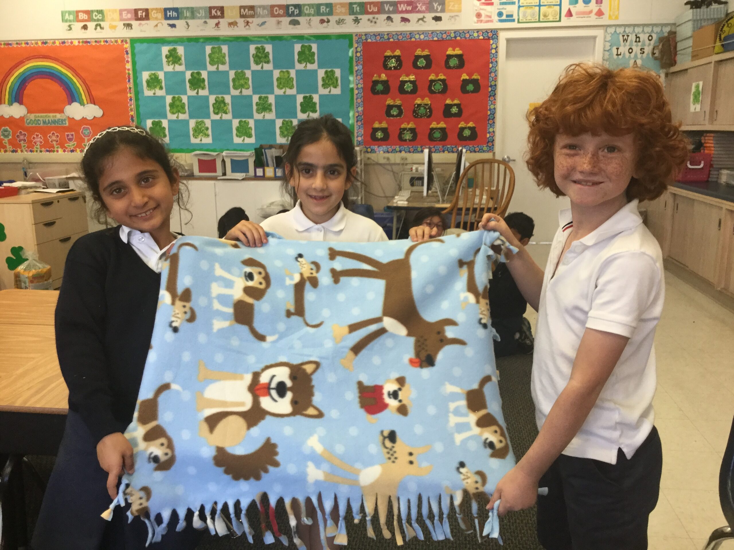 Grade 1 students conducted their annual drive for the Humane Society of Silicon Valley in mid-March, raising $556 in addition to collecting about 50 bags of supplies, toys, food, treats and other goods from the lower school community. The students made many of the items they donated. For example, Grace Wallace’s class made dog toys and Cindy Proctor’s students made cat blankets. Proctor reported that the folks at HSSV were “thrilled and very appreciative” of the donations.