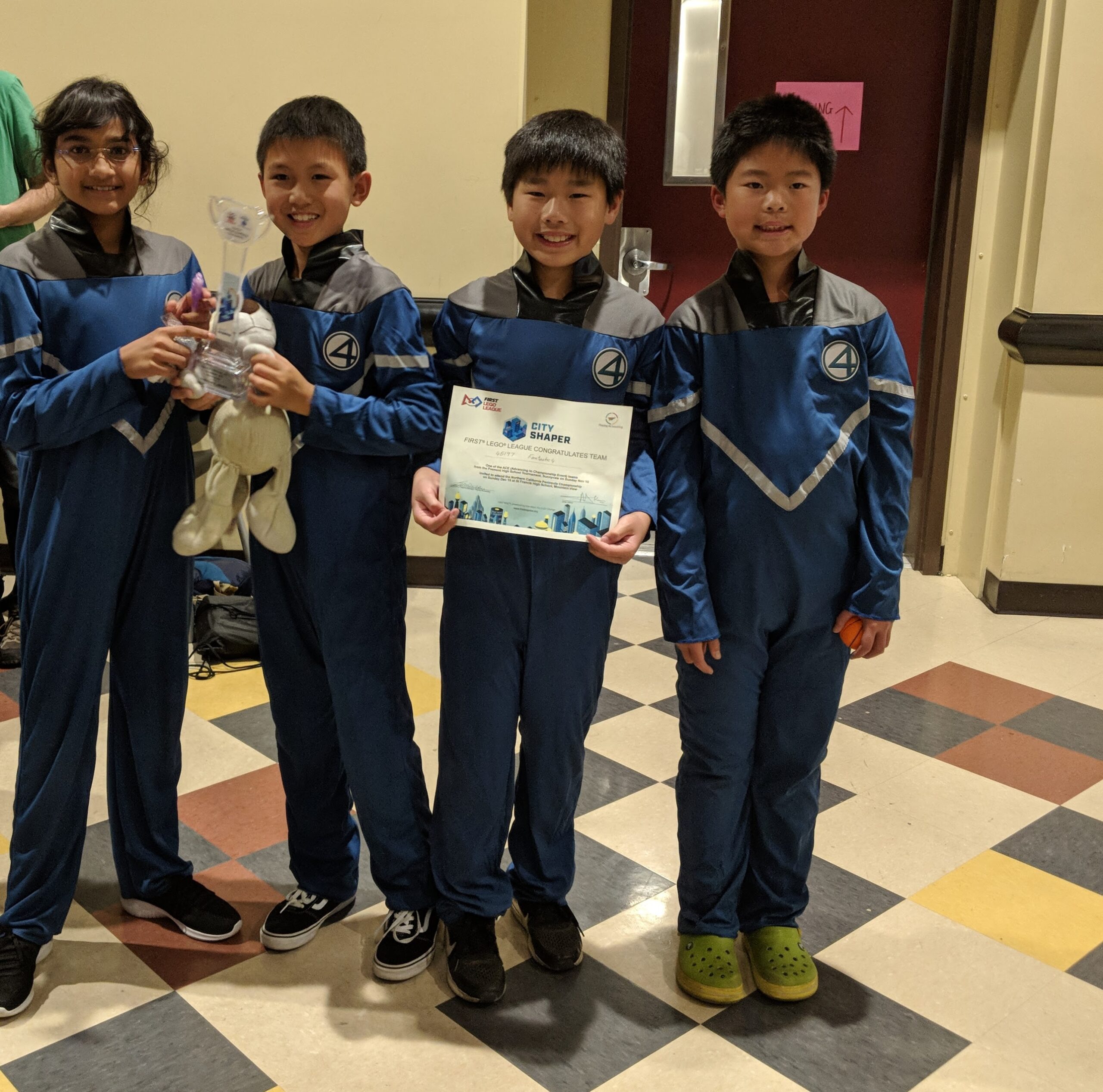 The team later competed at the FLL NorCal Peninsula Championships, where it won the Robot Design Award. The award is given to a team whose robot performs consistently well in areas such as efficiency, durability and challenge missions.