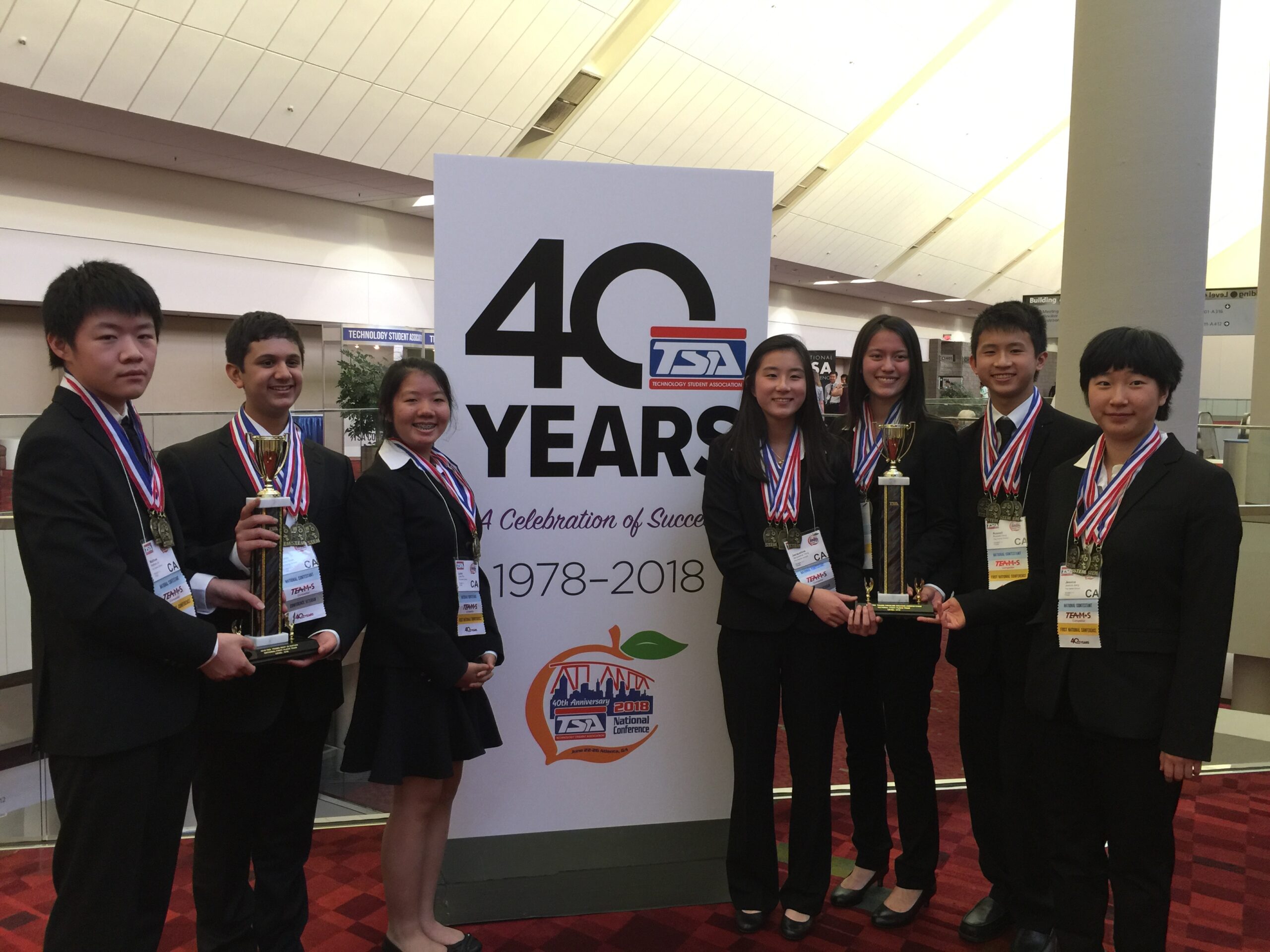 Harker students turned in one of their best performances to date at this year’s TEAMS (Test of Engineering Aptitude, Mathematics and Science) national competition, held June 22-26 in Atlanta. Team A – consisting of rising juniors Jessica Jiang, Matthew Jin, Sachin Shah, Jasmine Wiese and team captain Jackie Yang, and rising sophomores Russell Yang and Luisa Pan – ranked first among the teams recognized as Best in Nation in the grades 9/10 division. They also were the top team in the Problem Solving category and among the top 10 in Prepared Presentation and Digital Media.