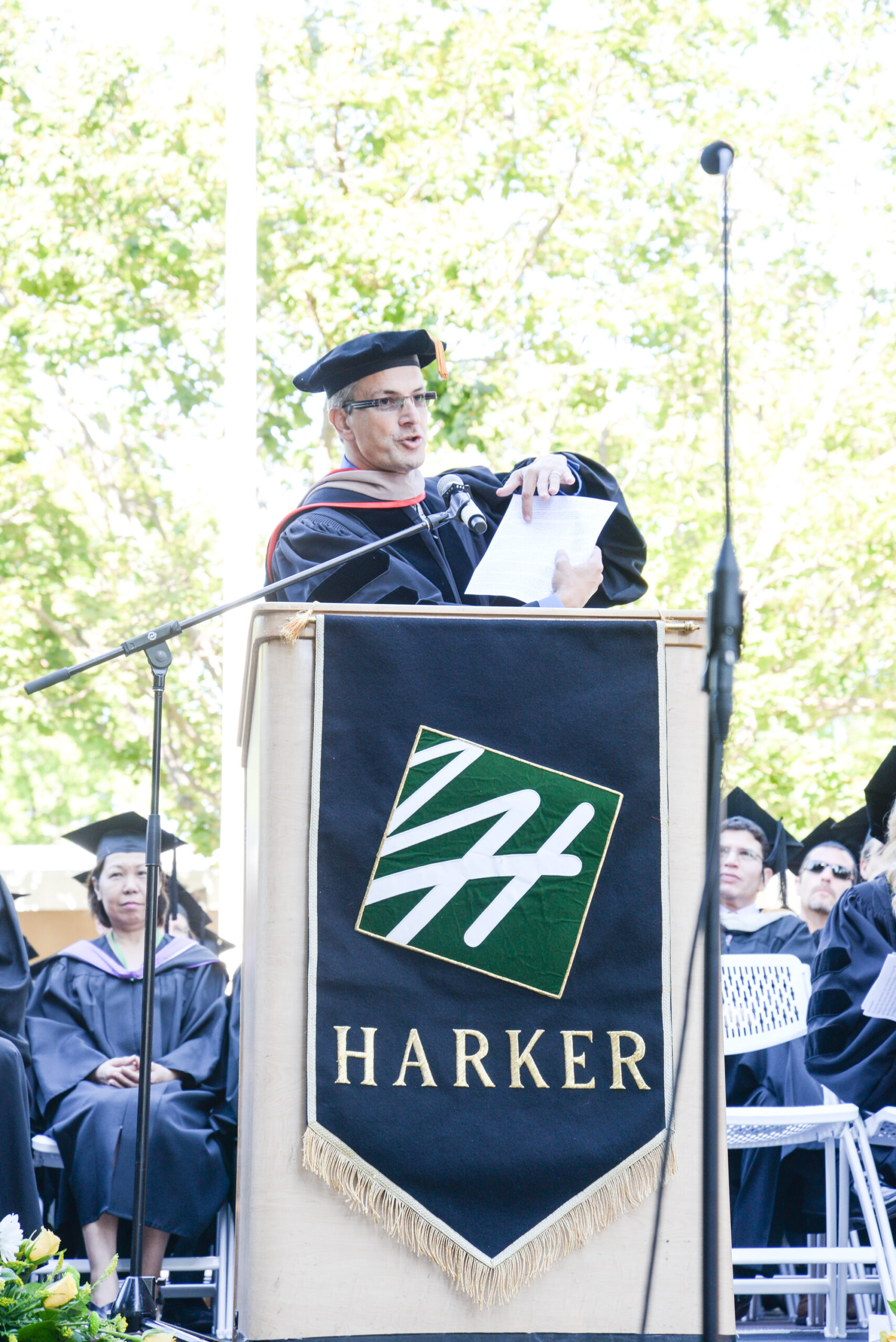 Good morning. I would like to welcome the classes of 2018, 2017, 2016 and 2015 to the 2014 matriculation ceremony. Matriculation is a ceremony initiated with the first class of the Harker upper school, the Class of 2002. During this ceremony new students to the upper school take an oath promising to follow the Honor Code, a document written by students in the early years of the Harker upper school and updated periodically. The Honor Code outlines how students as a community wish to live together and wish to be treated by each other. Honesty and respect, for instance, are important tenets of the Honor Code.