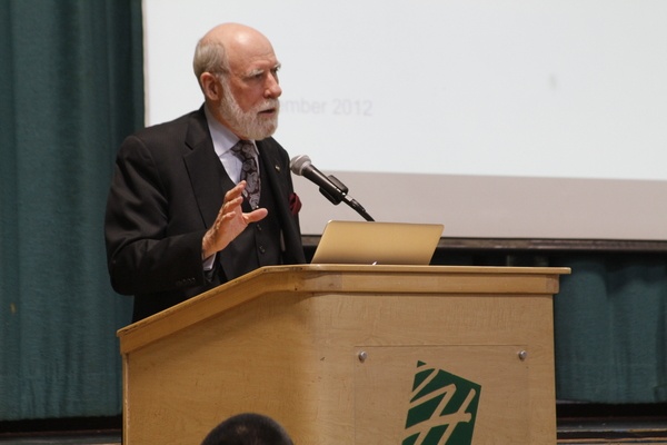 Vint Cerf, a celebrated computer scientist lauded as one of the “fathers of the Internet,” spoke to a special upper school assembly on Friday to share his views on where he believes the Internet is headed and the moving story of how technology granted his deaf wife the ability to hear.