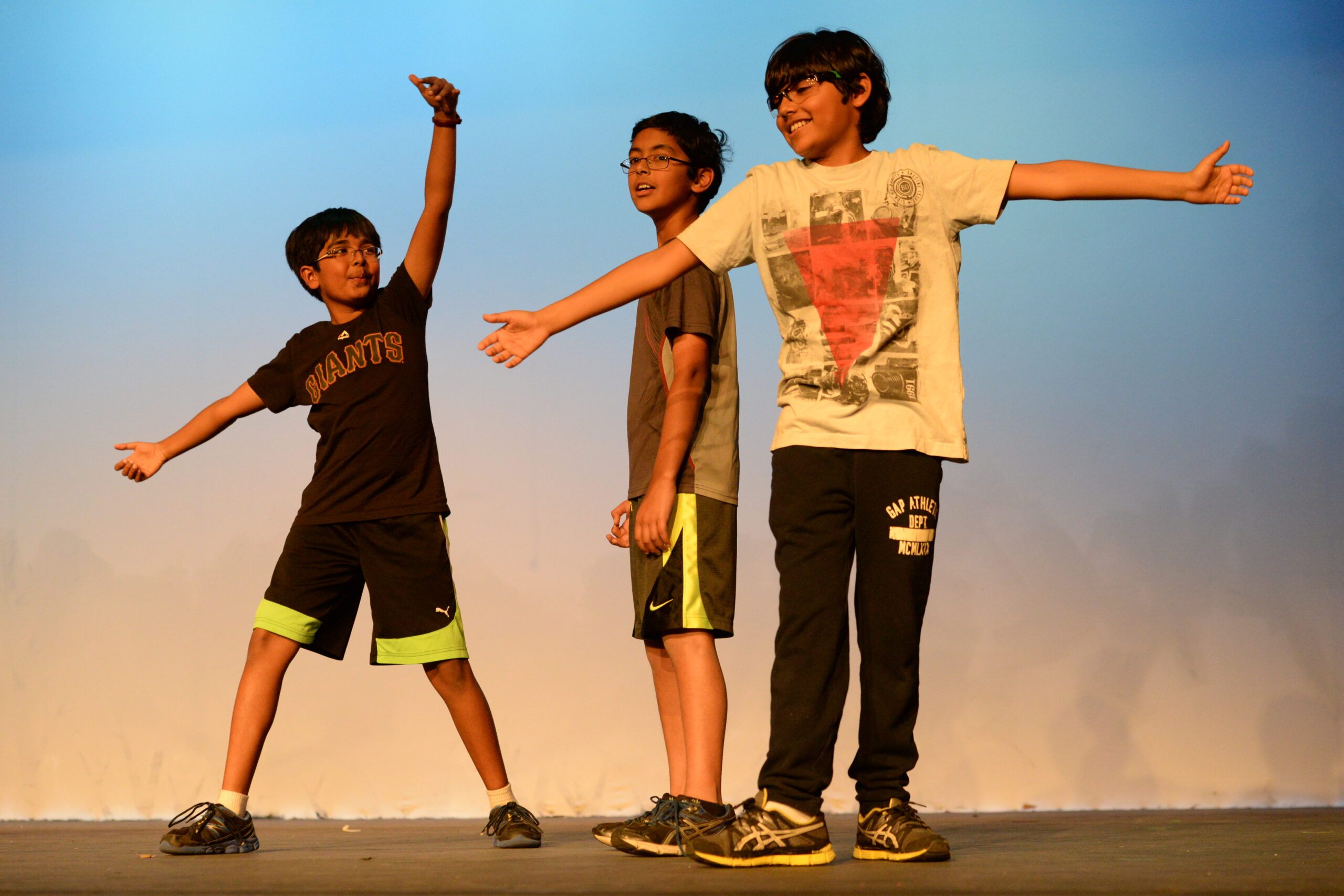 The first show of the evening was Alan Haehnel’s “No Show,” guest-directed by Harker alumnus Cooper Sivara ’07, who also served as an assistant director on the upper school production of “The Laramie Project.” This production was also the first annual grade 6 play, a brand new addition to the middle school performance schedule, and featured a cast made up entirely of grade 6 students. In this unique comedy, a group of theater students find themselves in a troubling position, all of them having forgotten that they are to give a final exam performance at the very moment they all appear on stage. Faced with the possibility of a failing grade, the actors band together to produce a play on the spot, humorously surveying the basic tenets of theater in the process.