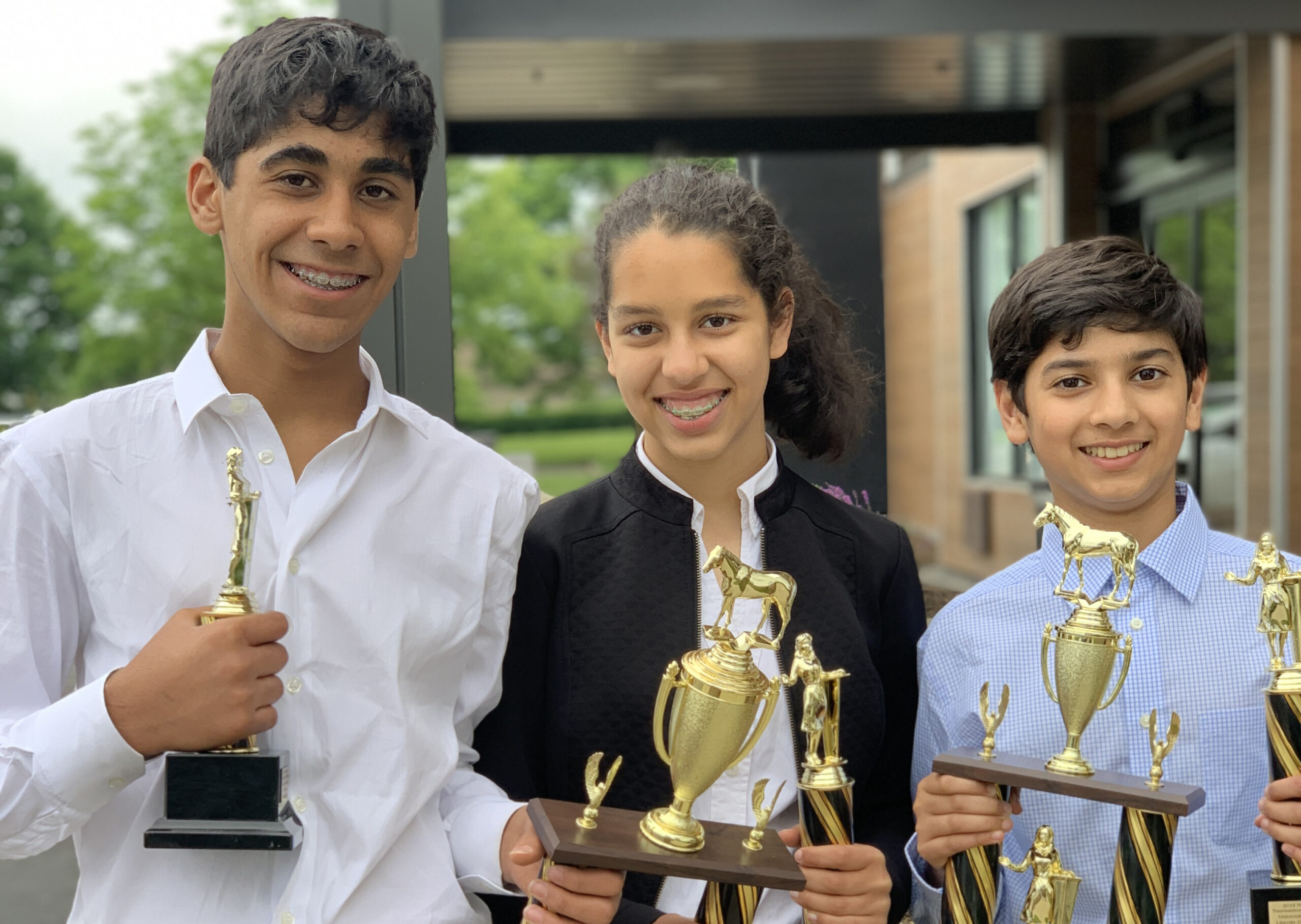 The team won first place in overall sweepstakes for the best performance at the tournament by any school. Shoring up this award were the top speaker in Lincoln-Douglas debate, Ansh Sheth, grade 7, and top speaker in policy debate, Deeya Viradia, grade 8. Arjun Krishna, grade 7, Krishna Mysoor, grade 7, and Mir Bahri, grade 8, also won debate speaker awards.