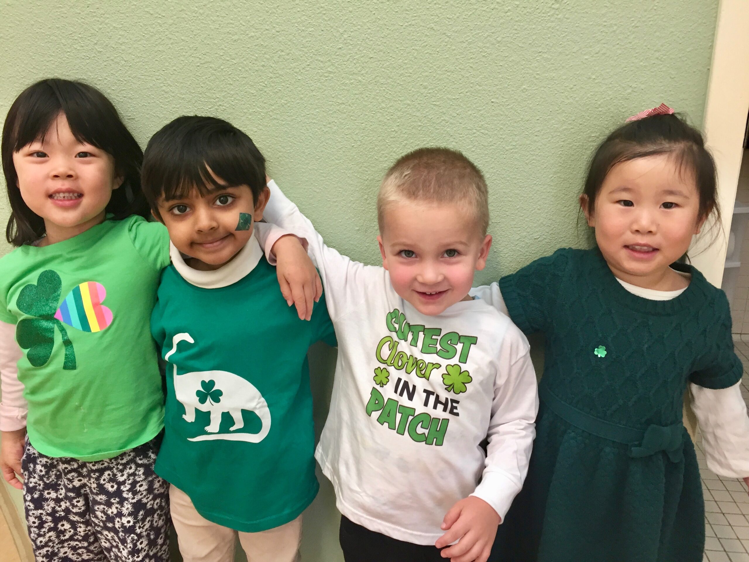 Harker Preschool’s Clover Cottage celebrated today by wearing green, talking about things they love to do in their cottage, beading green necklaces, eating green cookies, dancing to Irish jig music, face painting and more. Additionally, the group enjoyed a special visit from a Clover family who shared a “green” activity. The students learned how vegetables and flowers start as seeds, grow roots and develop from there. After exploring carrots, radishes, green onions and lettuce, the children got the opportunity to do some planting of their own. Happy St. Patrick’s Day!