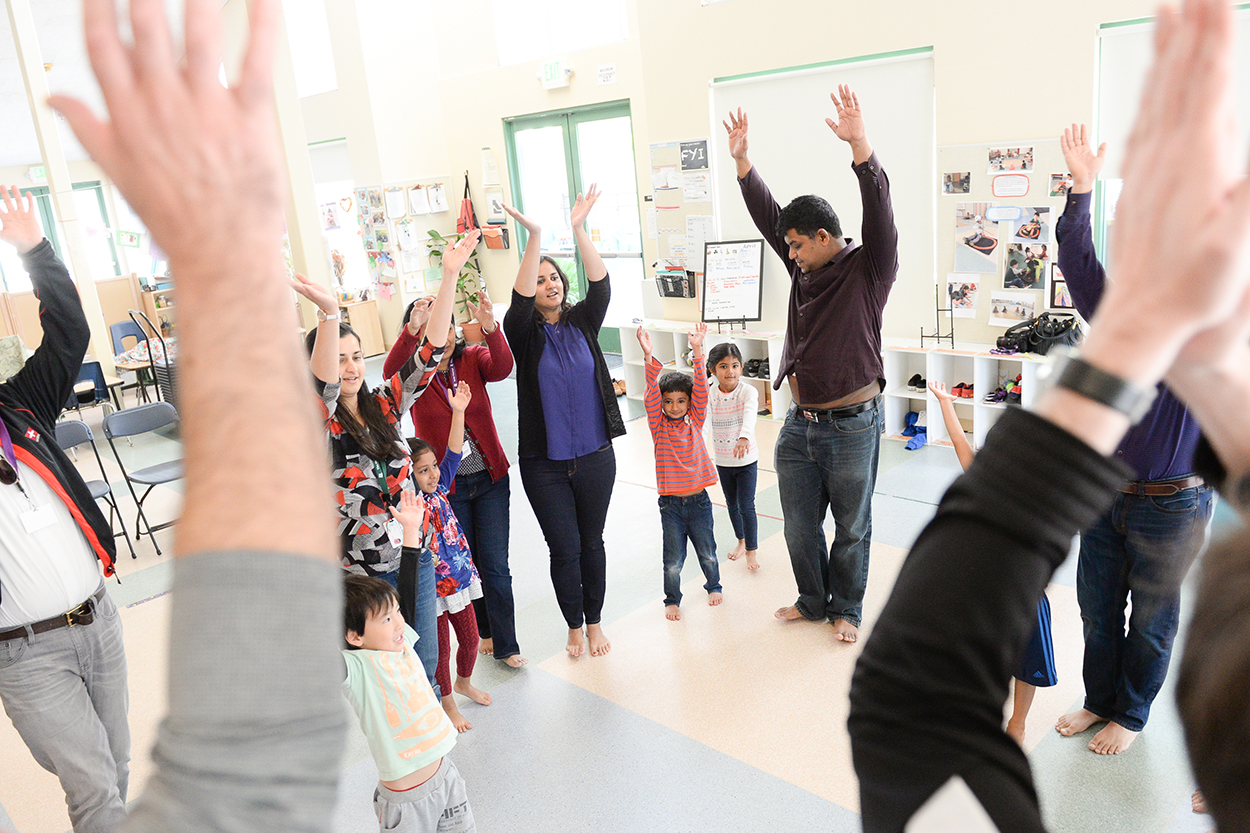 Parents and their preschoolers moved to the music in a delightful activity in late May. At the end of each year, Mara Beckerman, music and movement specialist, invites parents to visit their child’s music and movement class. In the past, parents simply observed, but this year, they were invited to join in by singing and dancing with their child. It was a great day for children and parents to show each other their moves!