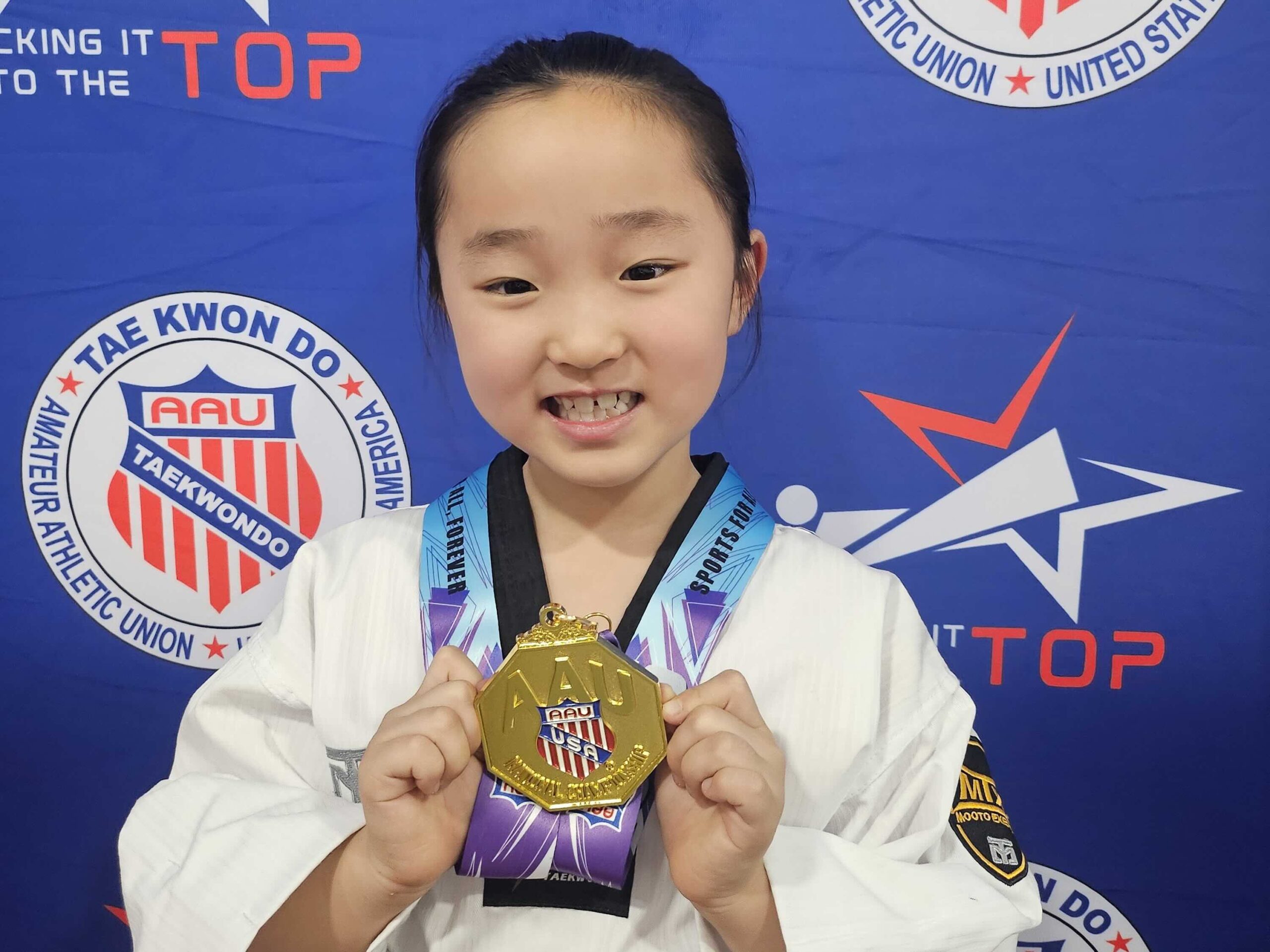 On July 2, rising second grader Ellie Ha won the gold medal her division of the open traditional forms competition at the 2025 AAU Taekwondo National Championship, held in Salt Lake City. This achievement followed months of dedicated preparation and hard work. “We’re incredibly proud of her achievement,” said Matthew, Ellie’s father.