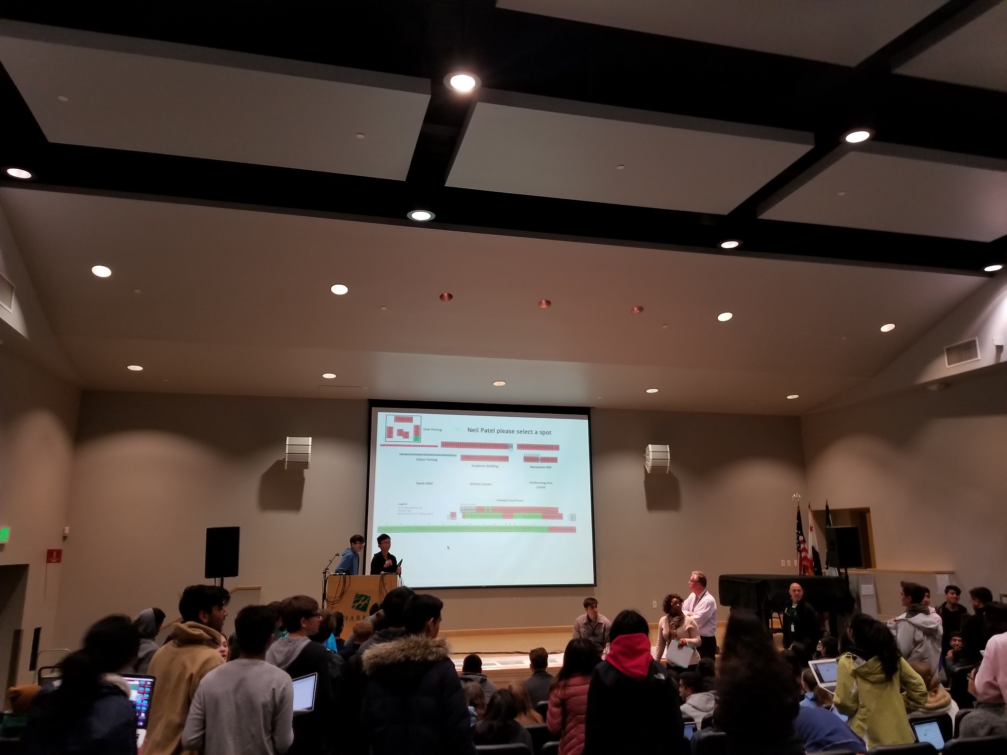 “We saw a need for a digitized parking system and sought to provide an efficient solution for students, faculty and administrators,” said Johnny Wang, grade 11, who created the app with fellow junior Cameron Jones. Seniors had their names entered into the app, which used “an efficient algorithm to randomly shuffle the students,” Wang said. The name of each selected student would then appeared on a projector, and he or she would be prompted to choose a space from the ones that were available. As an added convenience, the app simultaneously updates Harker’s parking database.