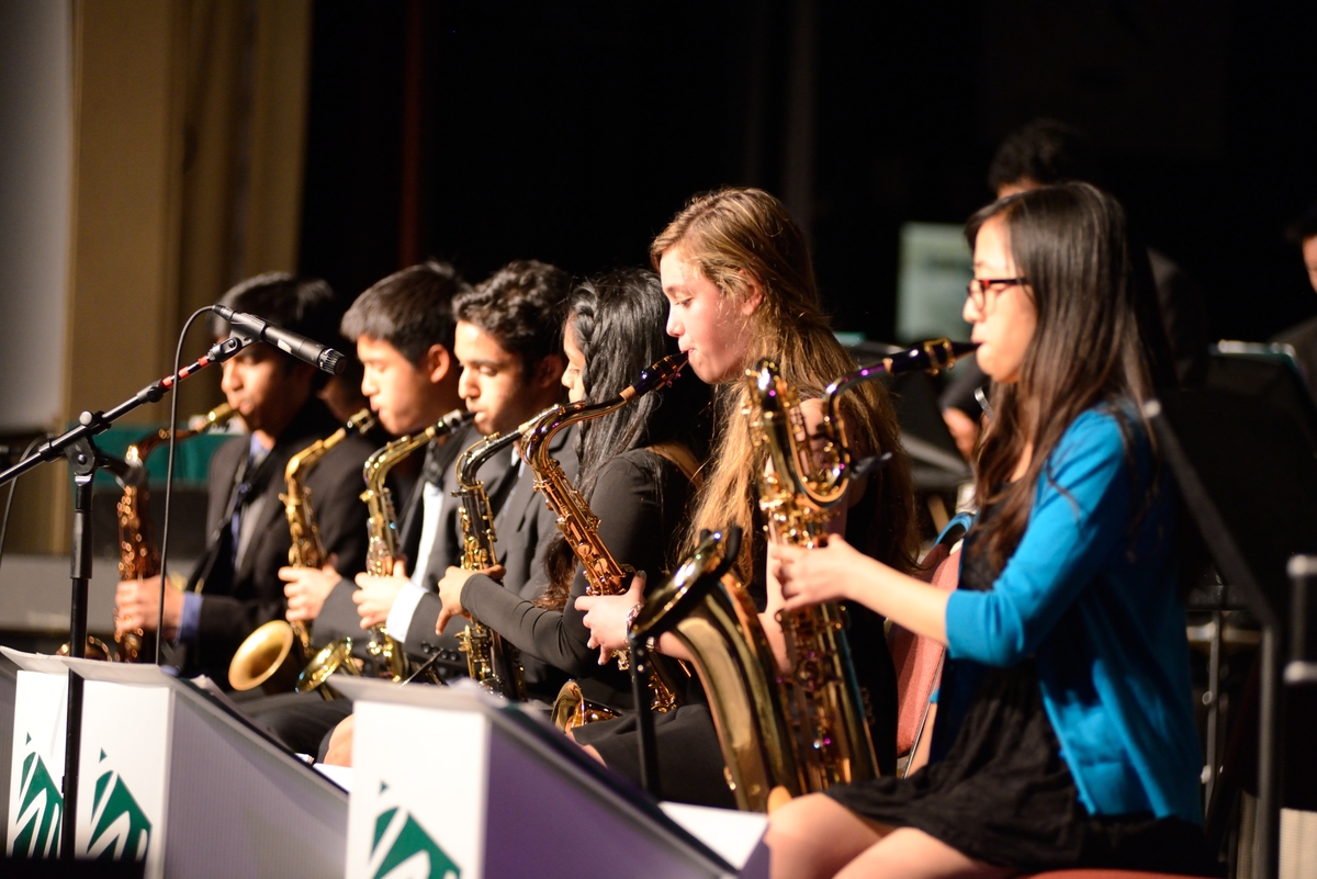 The Harker School Jazz Band, directed by Chris Florio, performed renditions of Freddie Green’s “Corner Pocket,” “Feelin’ Good” by Leslie Bricusse and Anthony Newley, and “I Be Serious ‘Bout Dem Blues” by John Clayton. Other highlights included an appearance by Harker’s Lab Band, the upper school’s introductory jazz ensemble directed by Hart, and the night’s encore, which featured all of the middle and upper school musicians performing the traditional “Second Line.”