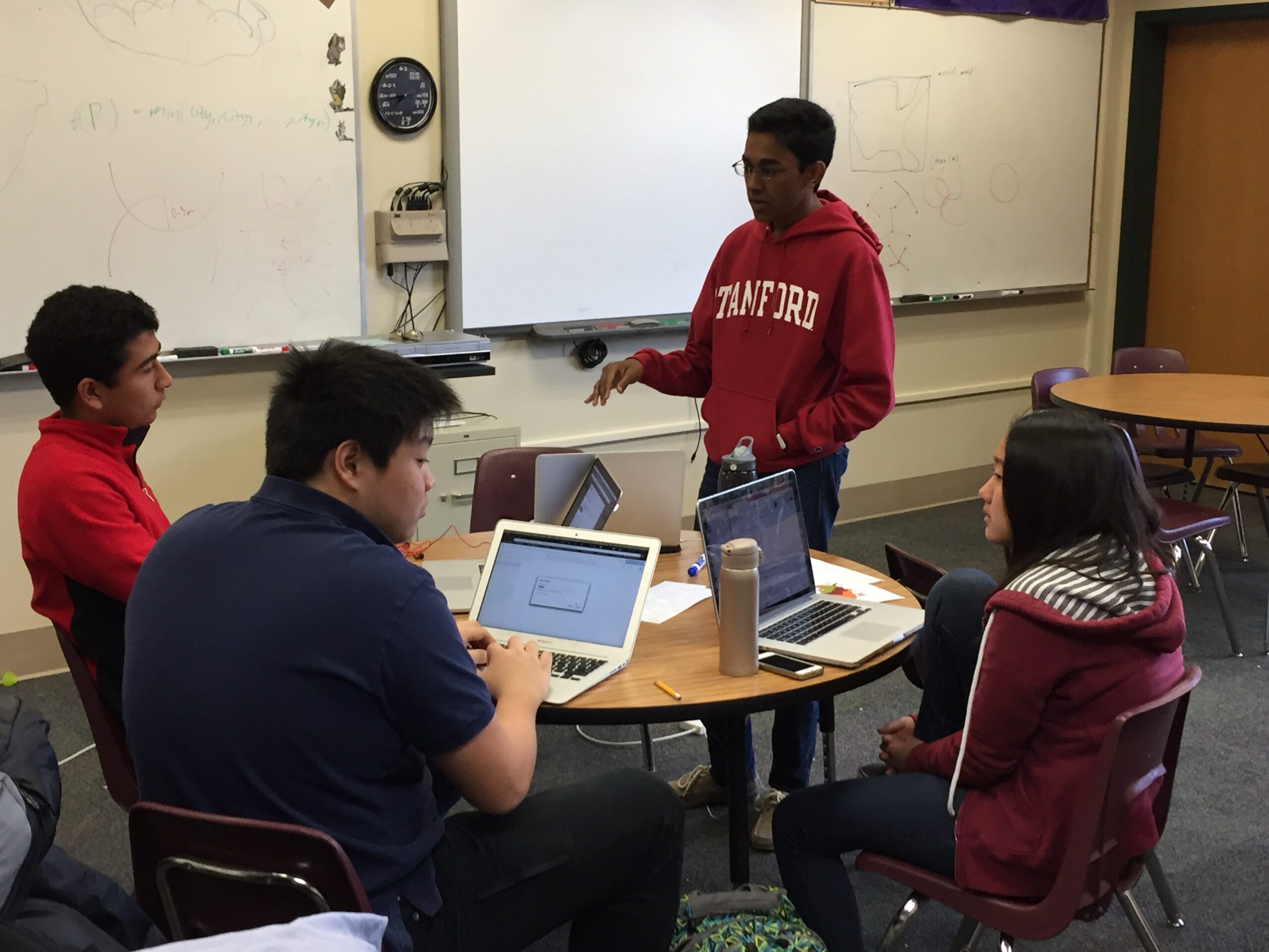 Harker recently received accolades for its participation in the 2016 High School Mathematical Contest in Modeling (HiMCM). In November, two teams of Harker students worked on solutions to real-world mathematical problems over a period of 36 hours. The first team – made up of sophomores Ayush Pancholy, Ashwin Rammohan, Nishant Ravi and Akshay Ravoor – devised a way to reduce course congestion during a 2,000-person triathlon, earning them an honorable mention in the contest.