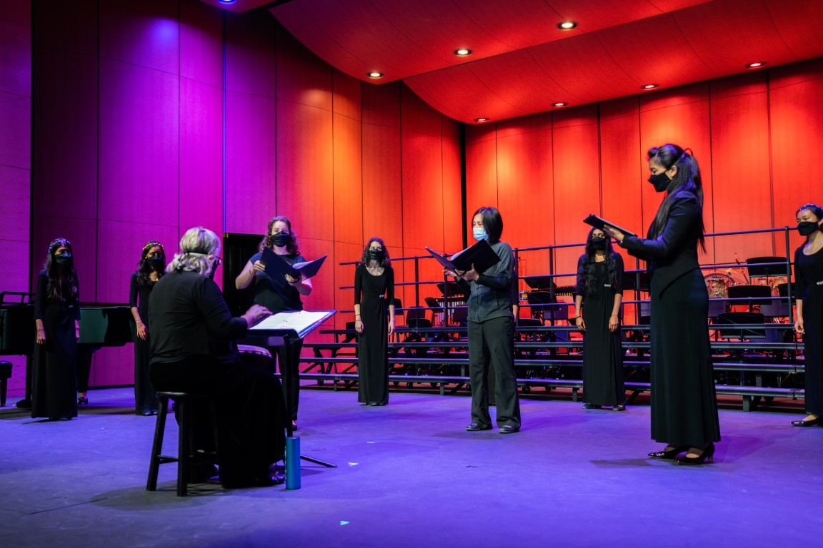 At last month’s upper school winter choral concert, women’s vocal group Cantilena was joined by three Harker alumnae who are now faculty members.