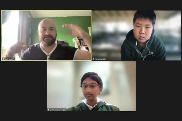 Author Kyle Lukoff spoke to middle school students on a special Zoom appearance, talking about his 2021 novel, “Too Bright to See.”