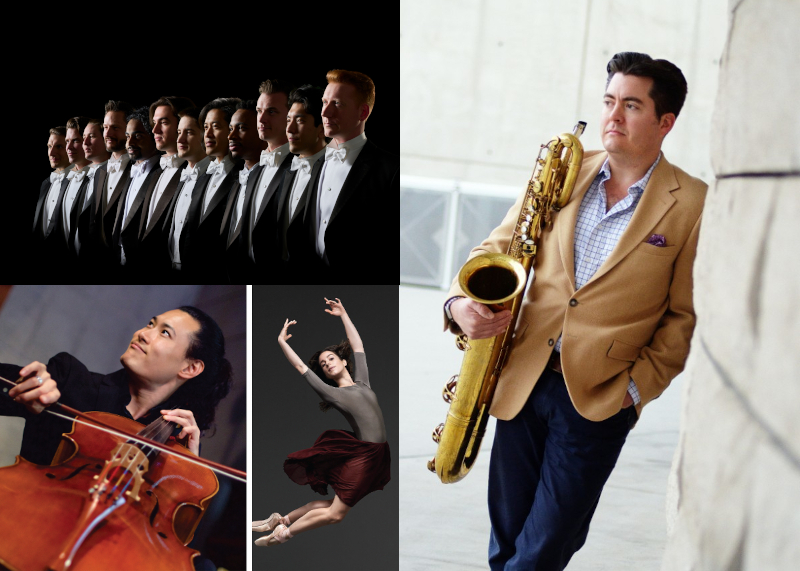 This season will feature Chanticleer, the duo of cellist Jonah Kim and dancer Julia Rowe and saxophonist and composer Aaron Lington.