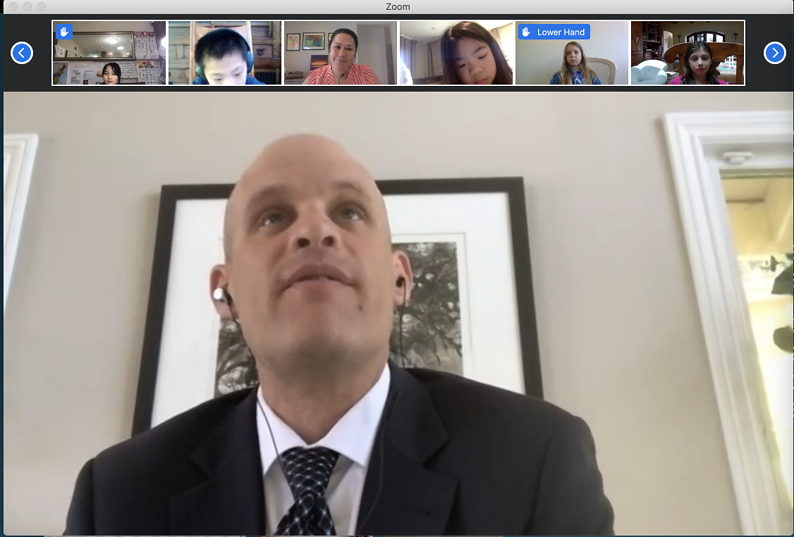 Judge John Owens MS ’85 drops by lower and upper school classes