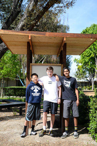 Last week, the final piece of a new kiosk outside the upper school library was attached. Freshman Peter Connors designed and built the structure for his Eagle…