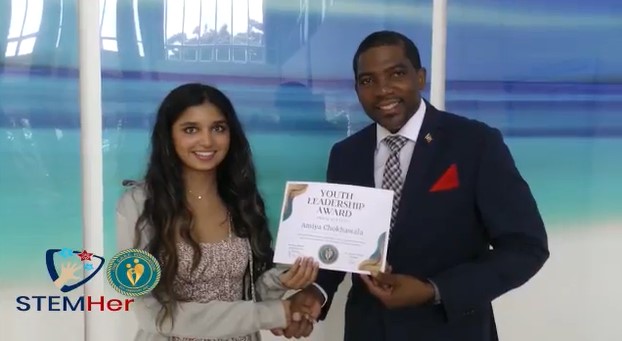 Late last month, senior Amiya Chokhawala received a Youth Leadership Award from St. Kitts and Nevis Prime Minster Terrance Drew.