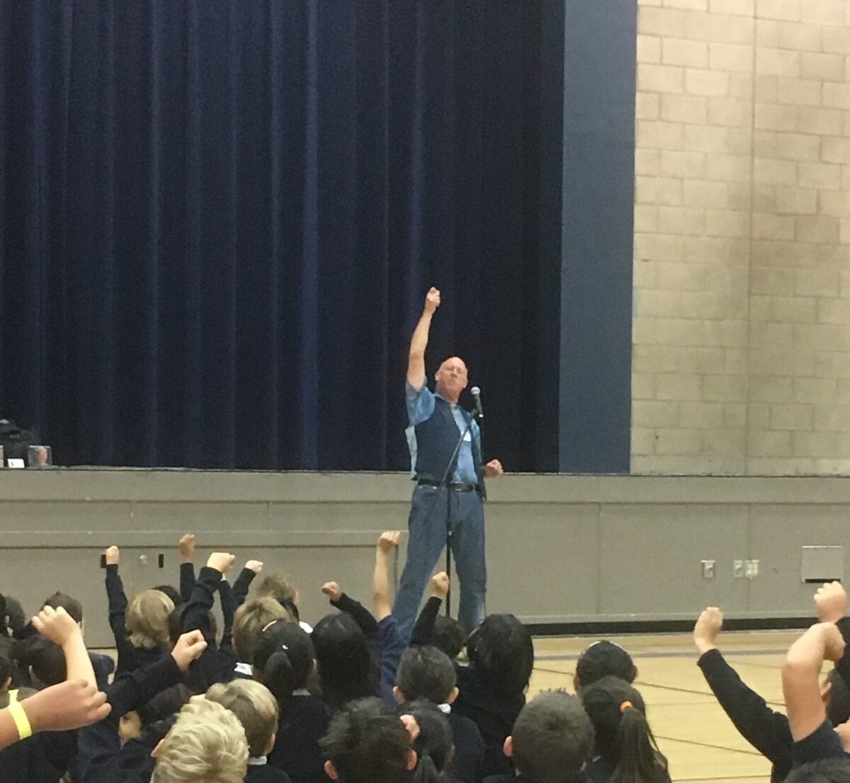 Storyteller Jim Cogan regales lower school students with tales of kindness