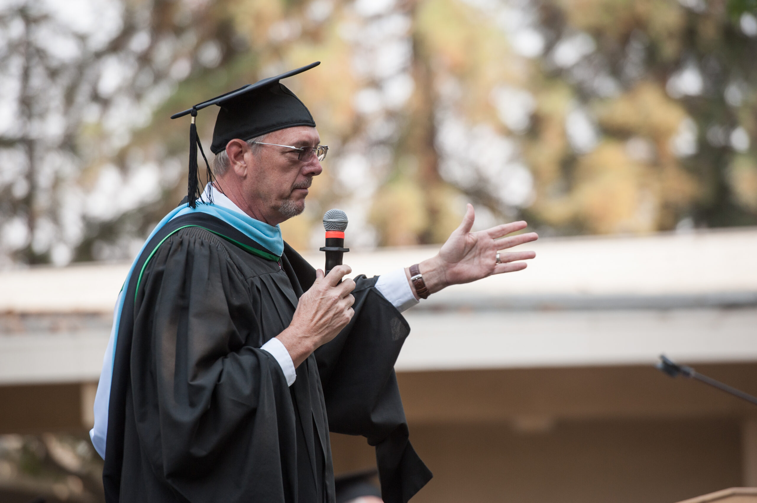 It was apparent early on that this year’s ceremony would differ from those of years past. Upper School Head Butch Keller, who at previous ceremonies often spoke of stepping out of one’s comfort zone, decided to recite this year’s speech entirely from memory while standing away from the podium. He explained to the students how fortunate they are to be enrolled at Harker, giving special recognition to the teachers who spent their summers here and abroad learning how to improve at their jobs. “You’re lucky that you have these kinds of teachers … dedicated to being the best that they can be, so that they can make you the best that you can be.”